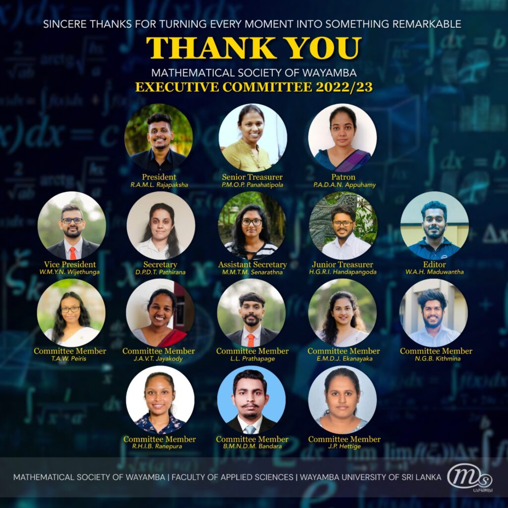 โœจHeartfelt gratitude to the Executive committee of the Mathematical Society of Wayamba 2022/23โœจ